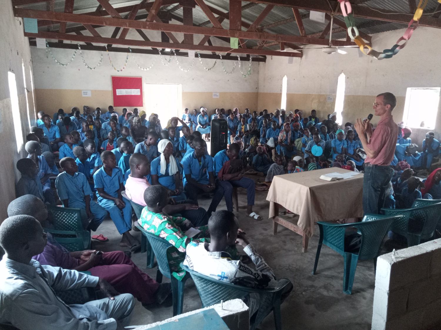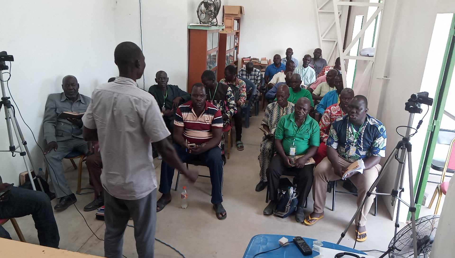Shortly after our return from the ordination ceremony in N'djamena, Desert Tree Ministry hosted a translation seminar organized by Timothée, the Director of Translation and Editing at our printshop. Our goal is to organize, equip, and motivate people to actively translate gospel literature into the local languages. The guest speaker was Josué Ouankissam from N'jdamena who presented topics such as "Essential Skills of the Translator," "Pitfalls of Translation," and "Translation Tools and Techniques." I (Jonathan) also presented topics such as "The History of Adventist Publishing Work" and "The Importance of the Printed Page in Evangelism." We had about twenty-five people in attendance, representing around eight language groups.